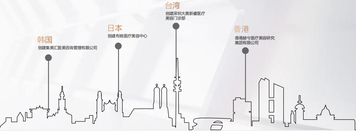 | 过去的三年,我们的足迹踏遍了韩国,日本,台湾,香港等医疗美容发达地区与日本生命科学研究中心韩国